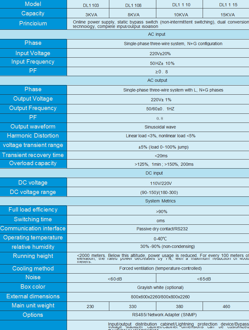 The DL series UPS is an online sinusoidal uninterruptible power supply system designed by our company specifically for the power sector. It is widely used in data centers, subways, highways, low-voltage electrical rooms, hospital medical equipment, large machinery, industrial equipment, power plants, substations, distribution stations, etc.