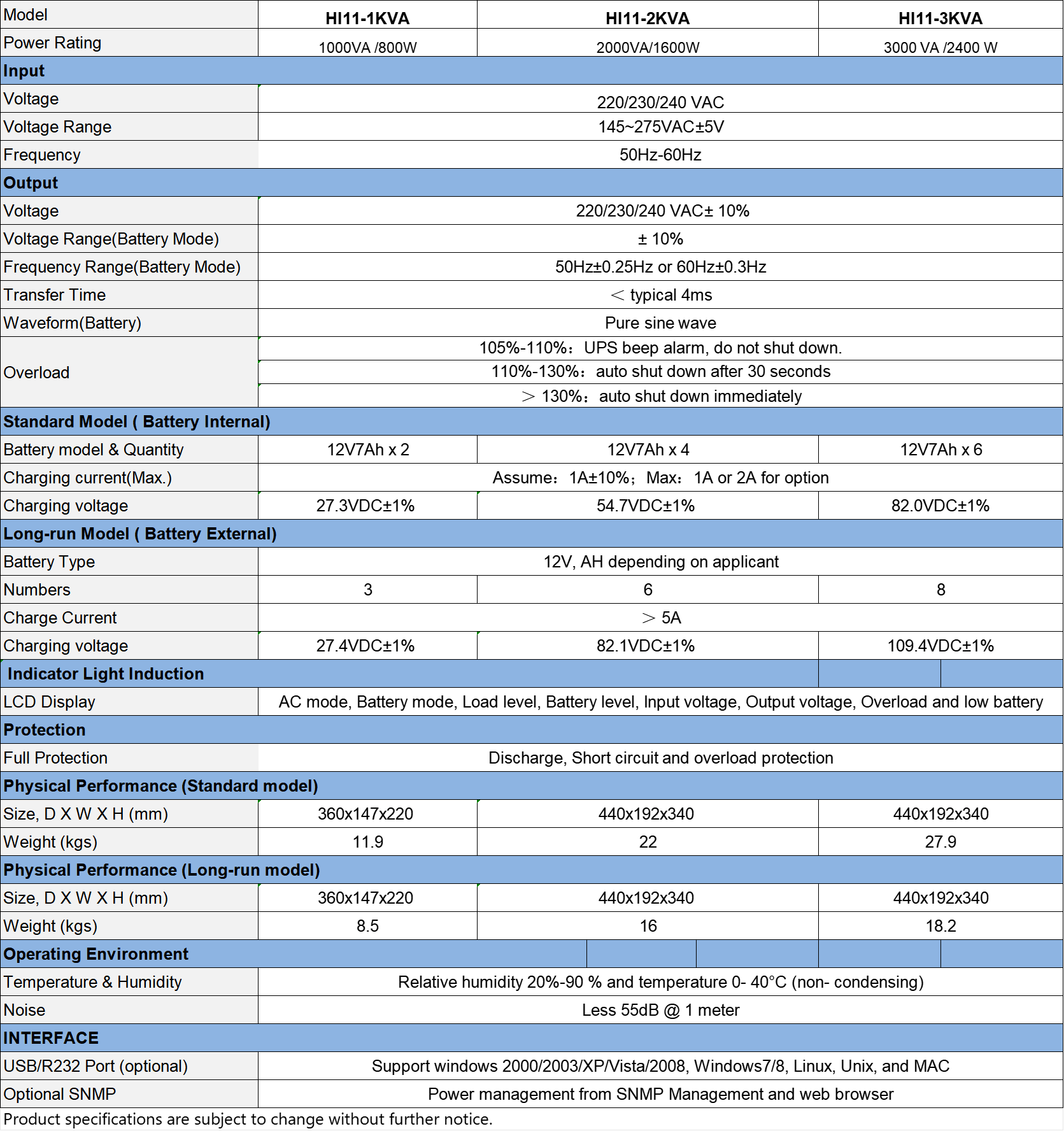 HI series online interactive UPS is a power supply protection for PCs, routers, POS machines, communication machines and industrial control products in enterprises, institutions, government, scientific research, transportation, national defense, information and education industries. It adopts CPU comprehensive control technology, and can accurately reflect and handle power failures, high and low voltages, surges, transients, peaks and other power abnormalities. PC series UPS also has automatic startup and automatic voltage stabilization functions, and has a very wide input voltage range, which can be applied to various complex power environments.