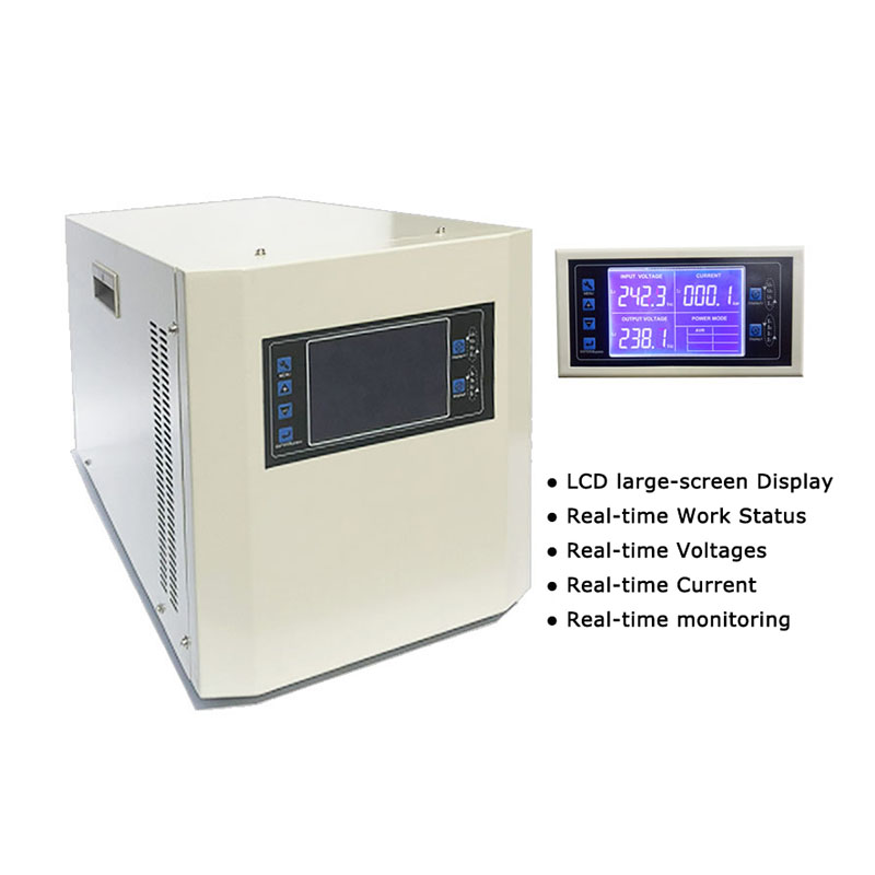 ZW-D series single phase intelligent static AC voltage stabilizer adopt the newest DSP operation and metering IC control technology, fastest AC sampling technology, effective values calibrating technology, current zero-crossing switching and fast compensating voltage stabilizing technology. They control several available silicon slice by special sequence to control the voltage connections, then to change the main voltage and voltage polar.